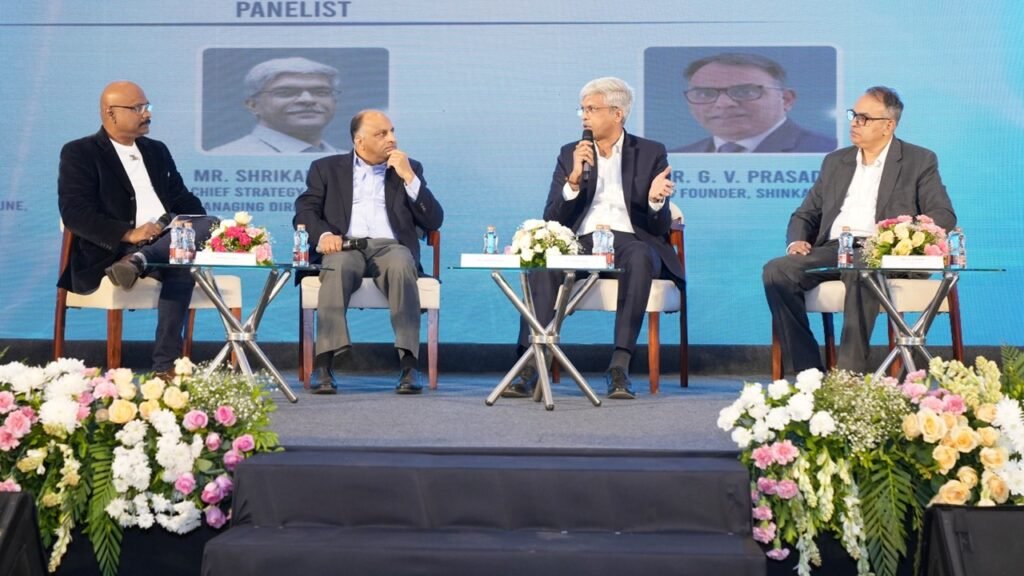 The session on “GCCs in AI, Fintech & Healthcare: Building GCCs – Challenges & Opportunities for MSMEs” was anchored by Dr. Sangramsinh Pawar. Panelists included Mr. Santosh Panicker, COO, SRKay, Mr. Shrikant Sarda, Former Managing Director, Accenture, and Mr. G. V. Prasad, Co-Founder, Shinkan.