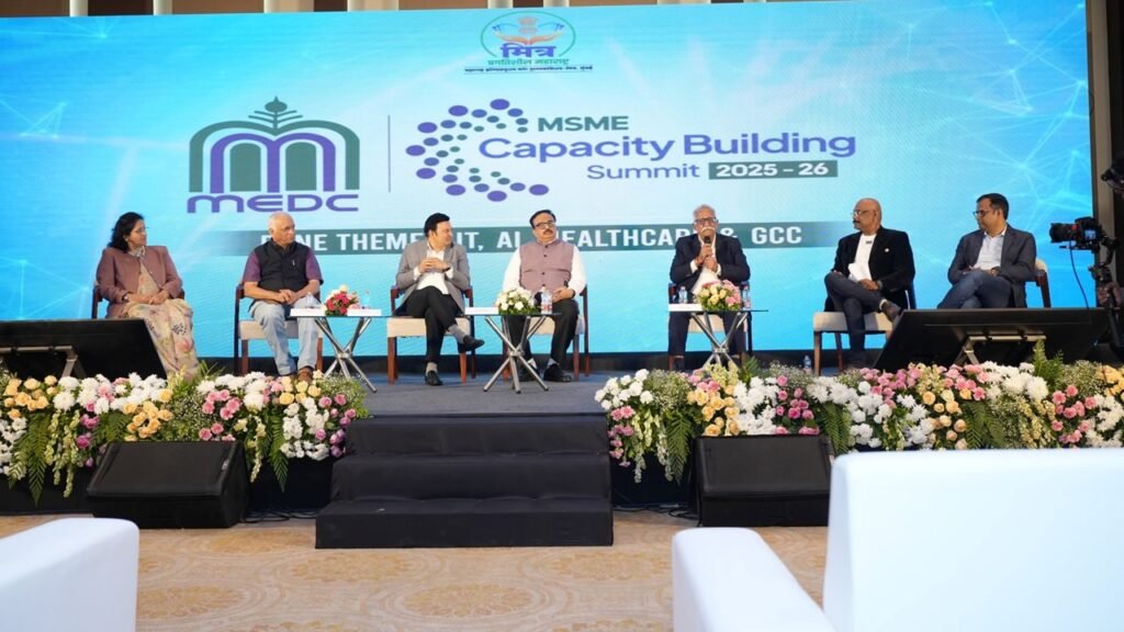 MEDC MSME Capacity Building Summit 2025–26 Held in Pune, Draws Packed House and Global Expertise to Power Maharashtra’s MSMEs: The MEDC MSME Capacity Building Summit 2025–26, organised by the Maharashtra Economic Development Council (MEDC), was successfully held on December 17, 2025, in Pune, and concluded as a sold-out, high-impact industry event. The summit brought together senior government officials, global technology leaders, healthcare experts, GCC specialists, and MSME stakeholders to chart a future-ready roadmap focused on Artificial Intelligence (AI), Global Capability Centers (GCCs), Fintech, Healthcare, and global market integration for Maharashtra’s MSME ecosystem.